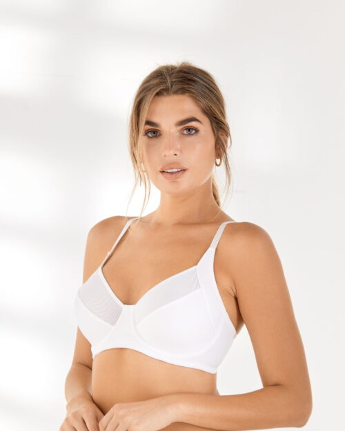 Corpiño 972 & 972/1, diseñado con aro para ofrecerte sujeción firme y detalle de tul que aporta un toque de femineidad. La microfibra reforzada garantiza durabilidad y ajuste impecable, mientras el tul realza la delicadeza de tu silueta.